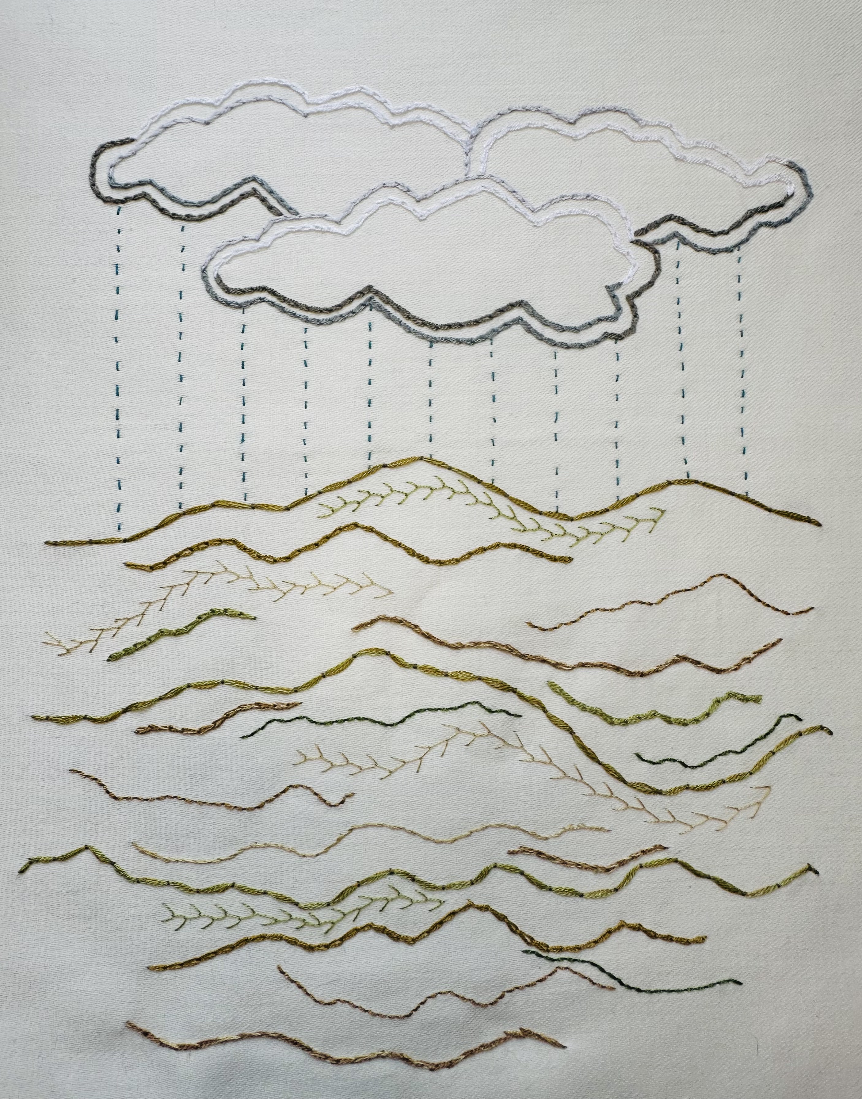 I continue to be influenced by my trip to Kerala, India in 2024. I am finding more sunshine in my hand embroidery work.