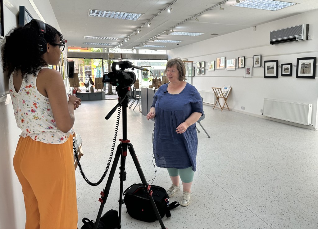 Now in its 10th year, the Committee organised an exhibition at the Nottingham Society of Artists in May 2025 and this gave the artists a chance to meet and see each others work – impossible on the Trail. We were very well supported by lots of visitors and sales and I was interviewed by Notts TV.