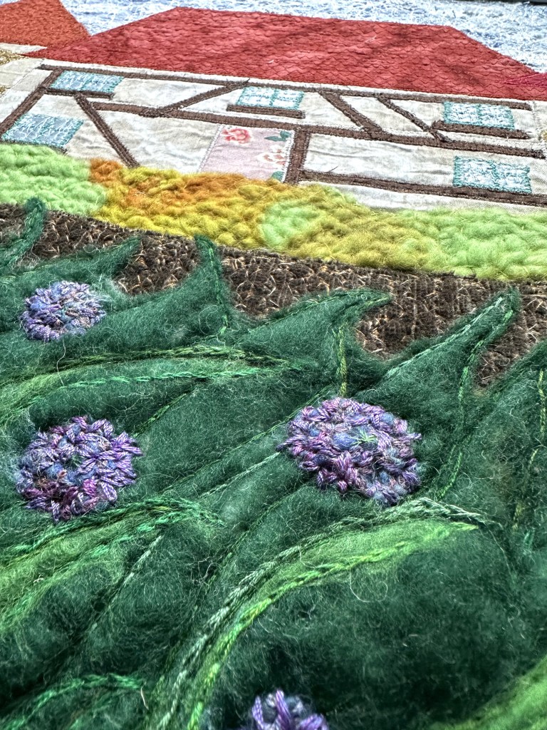 Being in such a prestigious exhibition has encouraged me to be bolder and bigger and more ambitious with my work. I have combined extensive hand embroidery to depict nature with a previous love of free machine stitching to depict buildings.